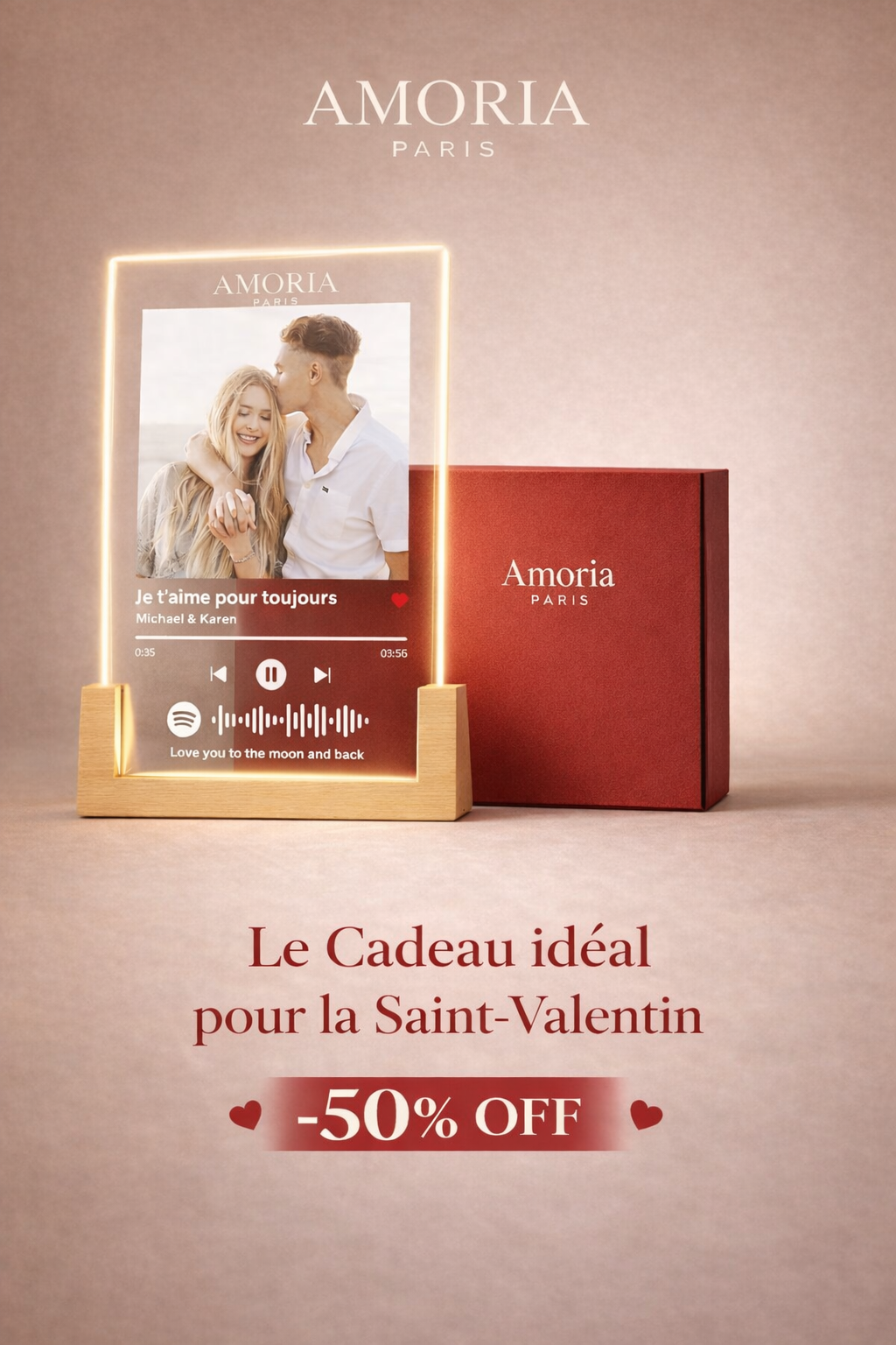 Design moderne en acrylique premium avec votre photo et chanson préférée